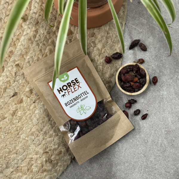 This sample bag contains a small amount of dried rose hip to introduce your horse to this tasty herb. Rose hips are the fruit of the rose hip bush and naturally very rich in various nutrients such as biotin and vitamin C. As a result, it contributes to healthy hoof growth, maintenance of good resistance and supports the natural removal of waste products.